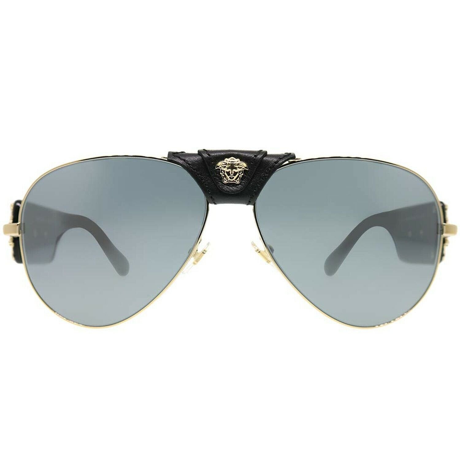 Versace VE2150Q 12526G Pale Gold Metal Aviator Sunglasses Grey Mirror Lens